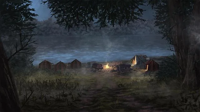 “Alors que vous avancez sur le chemin de terre solitaire, vous rencontrez une bifurcation sur votre chemin. L’un des chemins continue au loin. L’autre est court et mène à un cul de sac avec quelques bâtiments tristes émergeant de la brume. C’est alors que vous entendez faiblement les cris effrayés d’un enfant”